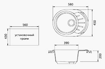 Размер монтажного отверстия под мойку (ШхГ) 56x43 см
