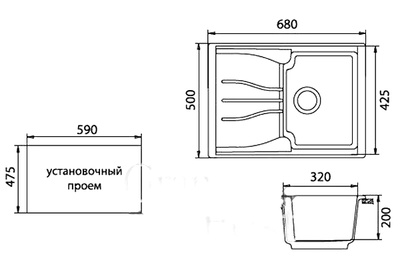 | Размер монтажного отверстия под мойку (ШхГ) 59x47.5 см | |