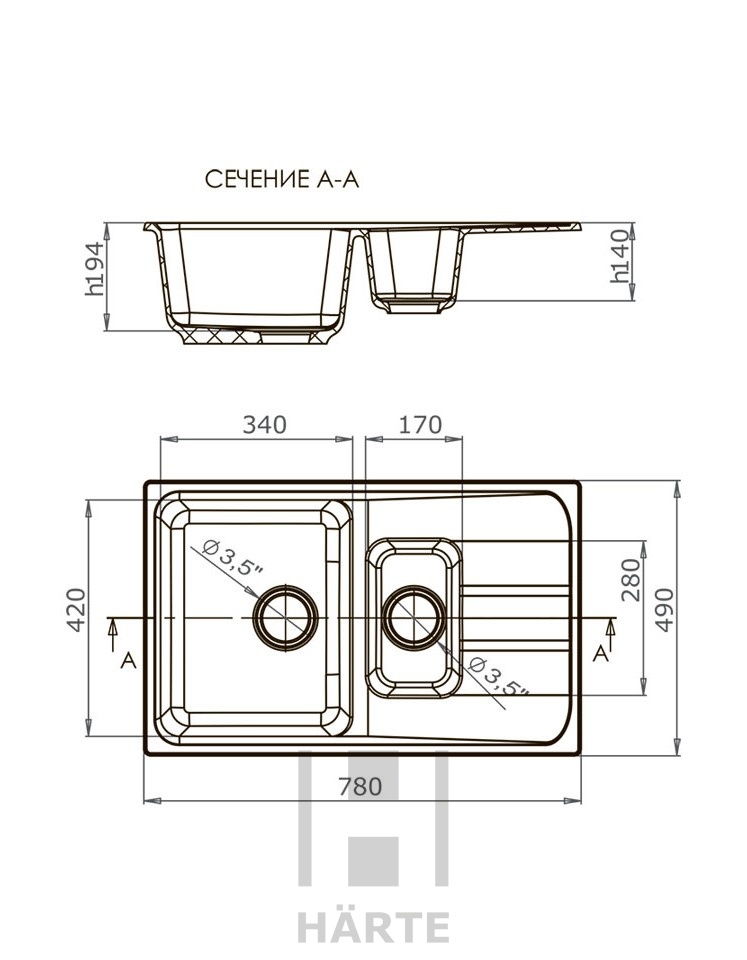 Подход к организации рабочего пространства в мойке от Harte 6078K, решён с пониманием потребностей просторной кухни. Забудьте обо всех неудобствах, связанных с теснотой чаши мойки и непродуманностью конструкции. Две чаши позволят вам удобно разграничить мытье посуды и, например, овощей и фруктов, плюс крыло для просушки посуды, но привлекает внимание не это. Довольно интересно выглядят широкие борта, на которых можно удобно расположить все кухонные аксессуары, а запатентованный рисунок крыла ускоряет уход за мойкой. Встраивается в тумбу от 60 см, подойдет для стандартной кухни. Размер сливного отверстия 3 ½ “ (D 90мм) даёт возможность установки диспозера. Мойка укомплектована сливной арматурой с выпуском 3 ½ “ (D 90мм), силиконовым герметиком и фрезой.