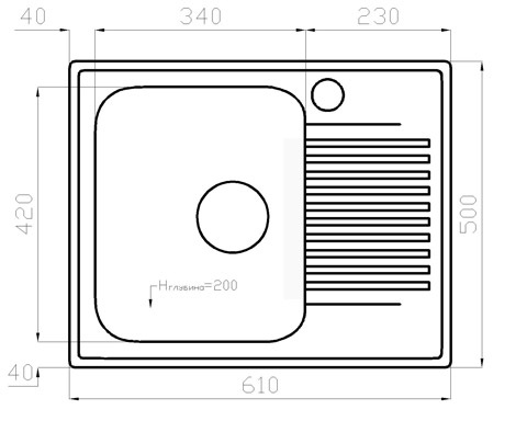 Кухонная мойка "Polygran" модель F-07 - мойка классической формы в технодизайне, отличается наличием граненых сливных желобков на крыле.