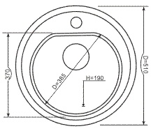 Внешний диаметр мойки: 510 мм. Размер чаши: диаметр 380 мм, глубина 190 мм.
