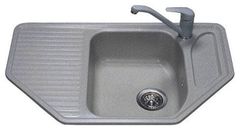 Кухонная мойка "Polygran" модель F-10 - компактная угловая модель с интегрированной мыльницей справа от чаши и стандартным отверстием для установки смесителя.