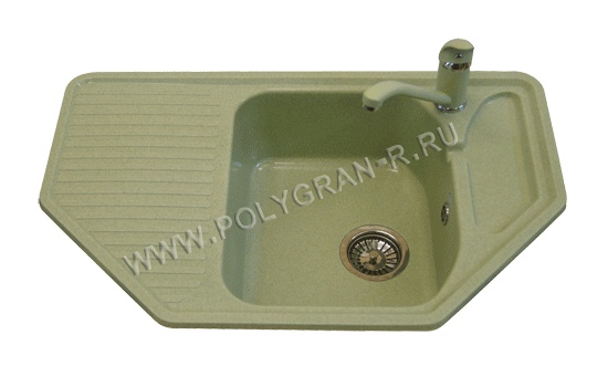 Кухонная мойка "Polygran" модель F-10 - компактная угловая модель с интегрированной мыльницей справа от чаши и стандартным отверстием для установки смесителя.