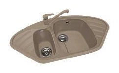 Кухонная мойка "Polygran" модель F-14 - большая угловая мойка с большой и малой чашами. По бокам у мойки имеется два небольших крыла. В продаже всегда - модель с малой чашей слева и готовым отверстием под смеситель.