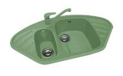 Кухонная мойка "Polygran" модель F-14 - большая угловая мойка с большой и малой чашами. По бокам у мойки имеется два небольших крыла. В продаже всегда - модель с малой чашей слева и готовым отверстием под смеситель.