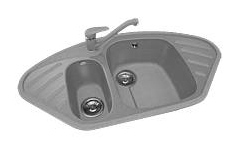 Кухонная мойка "Polygran" модель F-14 - большая угловая мойка с большой и малой чашами. По бокам у мойки имеется два небольших крыла. В продаже всегда - модель с малой чашей слева и готовым отверстием под смеситель.
