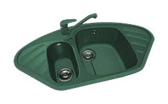 Кухонная мойка "Polygran" модель F-14 - большая угловая мойка с большой и малой чашами. По бокам у мойки имеется два небольших крыла. В продаже всегда - модель с малой чашей слева и готовым отверстием под смеситель.
