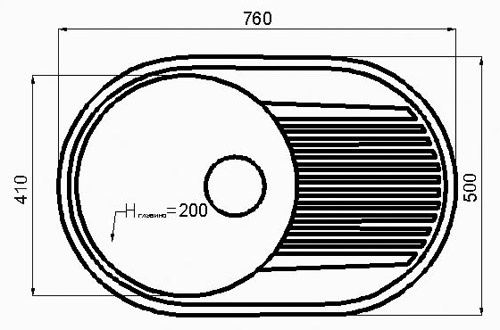 Внешние размеры: длина: 760 мм., ширина: 500 мм. Объем чаши: диаметр 410 мм; глубина 200 мм.