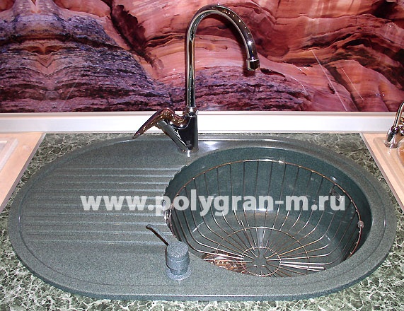 Кухонная мойка "Polygran" модель F-16 - мойка овальной формы с круглой чашей, пользуется большим спросом на протяжении многих лет, создает ощущение легкости и уюта на кухне. Не забудьте поставить дозатор в цвет мойки или кран фильтра питьевой воды.