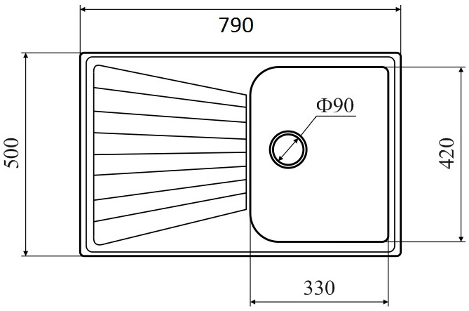 | Размеры мойки (ШхГ) 79х50 см | |