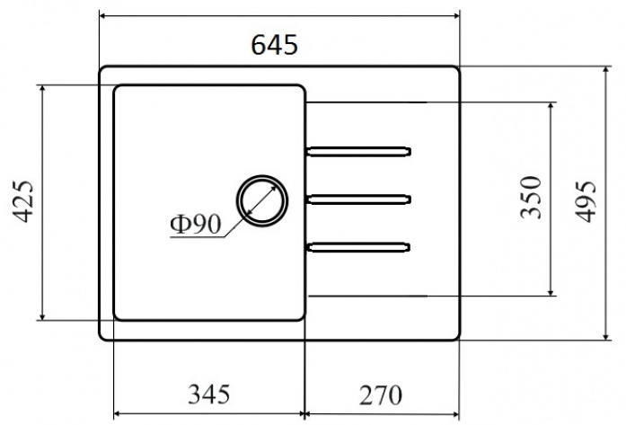 | Размеры мойки (ШхГ) 64.50х49.50 см | |