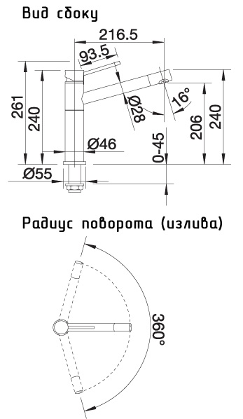 | Длина излива: | 216.5 мм |