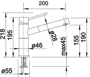 | Излив длина 200 мм, высота 155 мм | |