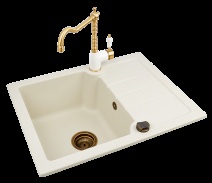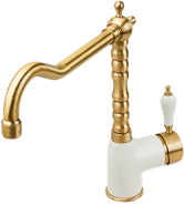 Однорычажный кухонный смеситель классического стиля комбинированного цвета, прекрасно сочетается с гранитными мойками и фурнитурой из хрома. Специальный картридж позволяет устанавливать смеситель практически вплотную к стене, с управлением рукоятки на себя.