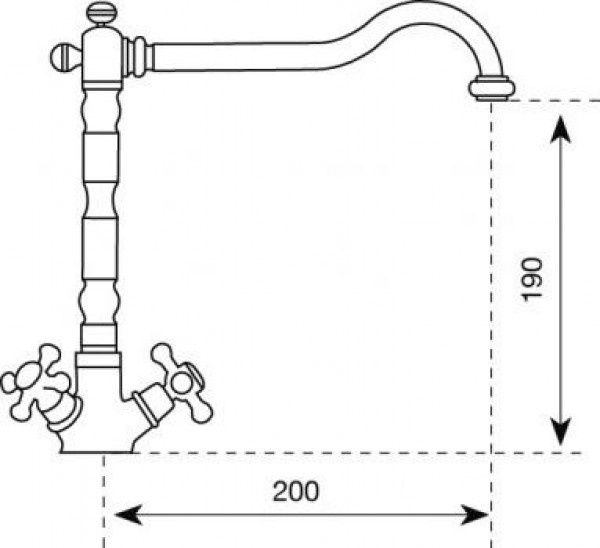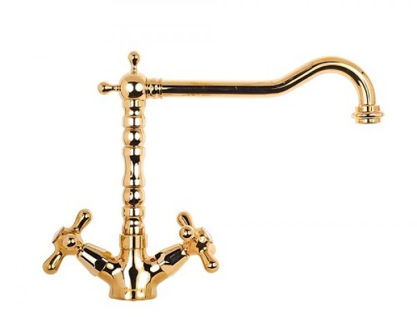 Двухрычажный кухонный смеситель классического стиля под состаренную бронзу на 1/2", прекрасно сочетается с классическими мойками и фурнитурой из состаренной бронзы.