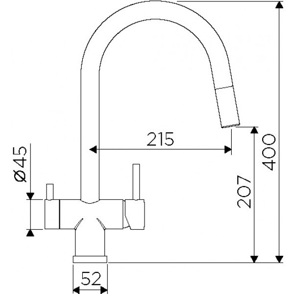 | Тип смесителя: | под фильтр 2 в 1, однорычажный с выдвижным изливом |