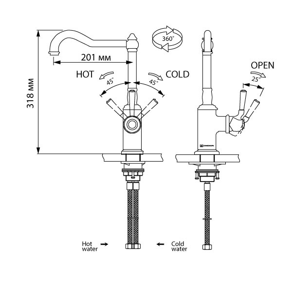 Эксклюзивный классический дизайн и удобство использования, благодаря высокому изливу;