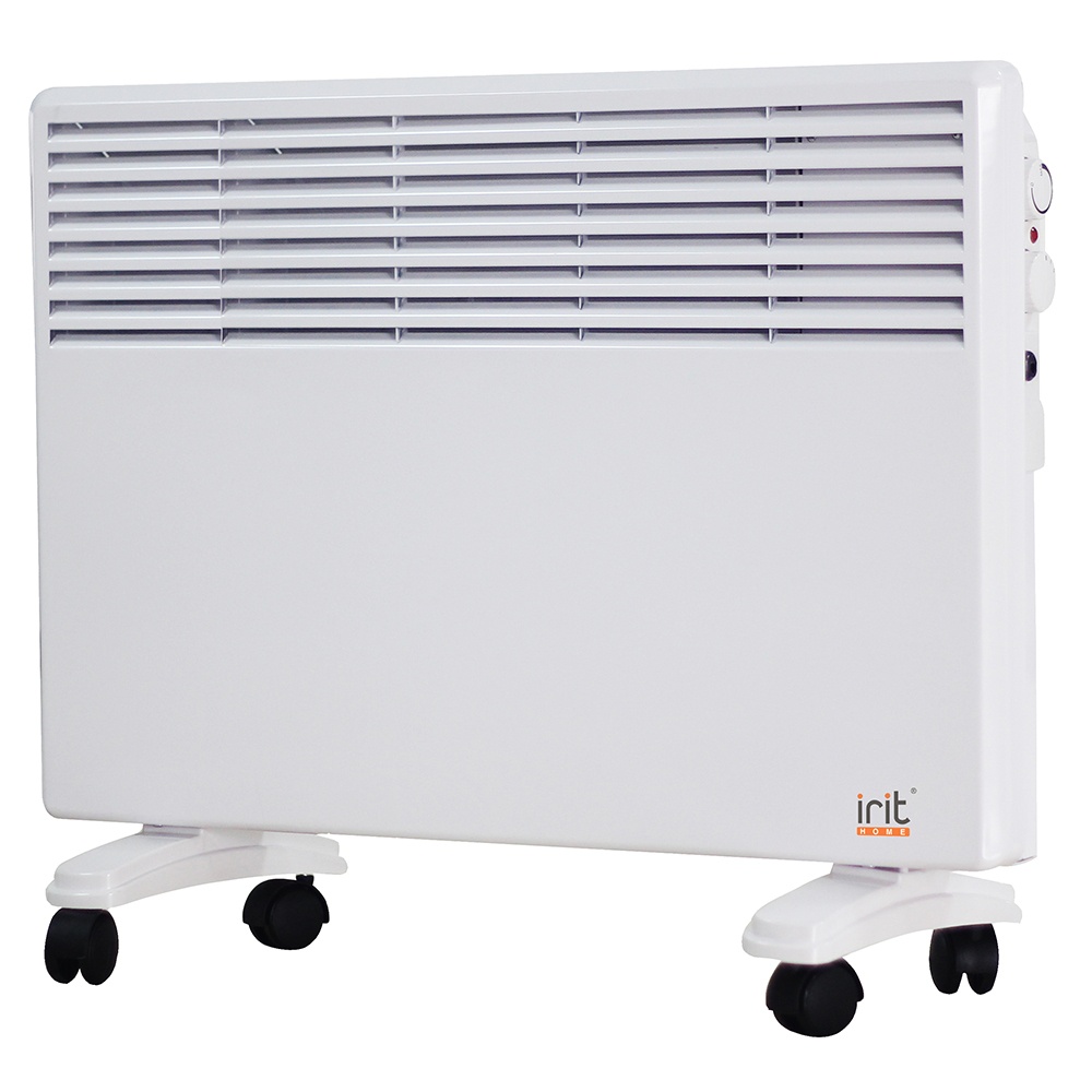 В IRIT IR-6206 присутствует светодиодный индикатор, по которому можно определить, работает конвектор в данный момент или нет. Удобные колесики, которыми оборудован прибор, позволят с легкостью перемещать его из одной комнаты в другую. Нагревательный элемент типа ТЭН обеспечивает быстрый нагрев устройства с момента его включения. При желании данную модель можно разместить на стене, предварительно удалив с его корпуса модуль с колесами.