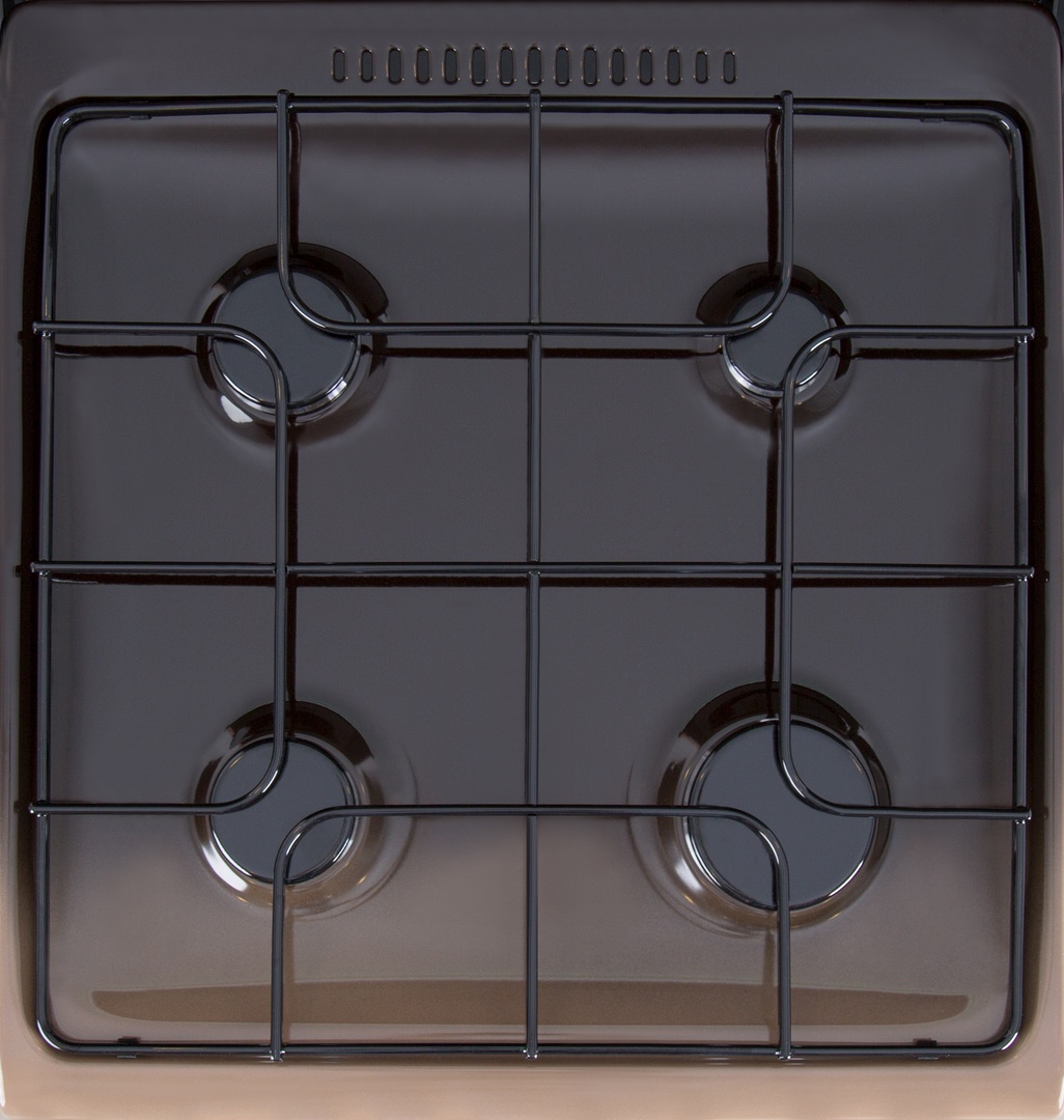 Размеры (ШхГхВ): 60x60x85 см. Объем духовки: 52 л. Съемные проволочные направляющие духовки. Газ-контроль духовки. Терморегулятор (термостат) Гриль. Чугунные решетки горелок.