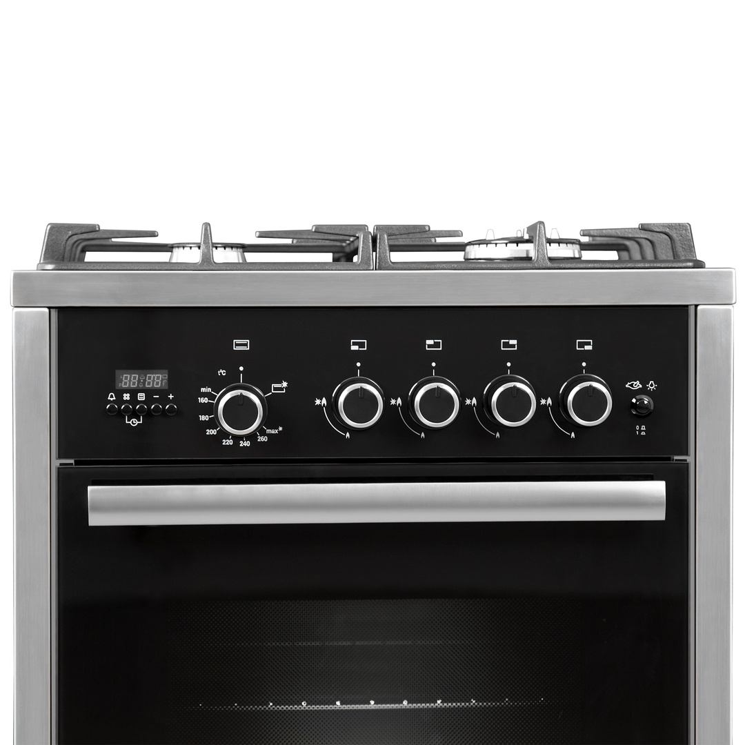 Цвет коричневый с растровым рисунком. Габариты (ШхГхВ) 60х60х85 см. Масса нетто 50,7 кг. Класс электробезопасности 1 Полезный объем духовки 52 л. Таймер электронный.