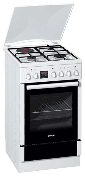 Модель GORENJE K 55303 AW выполнена в белом цвете. Комбинированная варочная поверхность сочетает три газовых конфорки и одну электрическую.