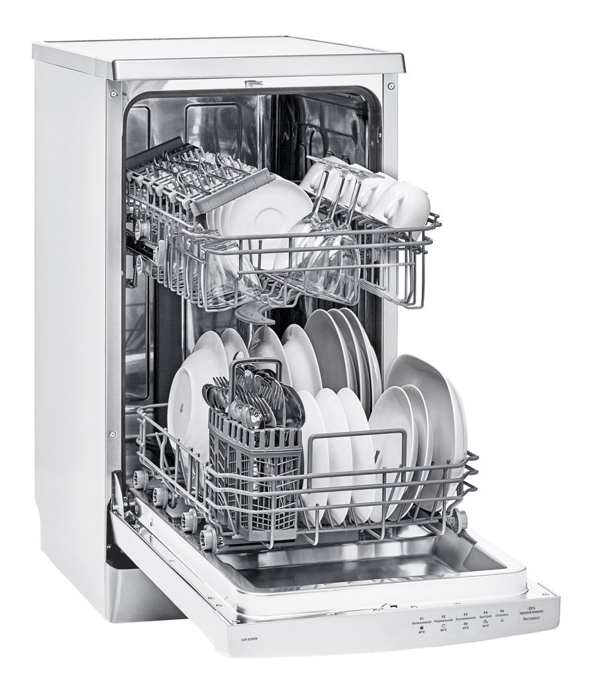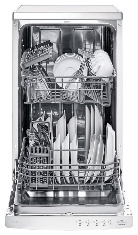 Candy CDP 2L952 W-07 — отдельностоящая посудомоечная машина с пятью программами мойки.