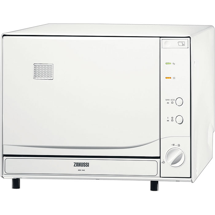 Посудомоечная машина Zanussi ZDC 240 – компактная настольная машина, вмещающая до 4 комплектов посуды. Небольшие габариты, малый уровень шума и экономный расход воды делают ее удобной для эксплуатации. Она может быть подключена как к холодной, так и к горячей воде.