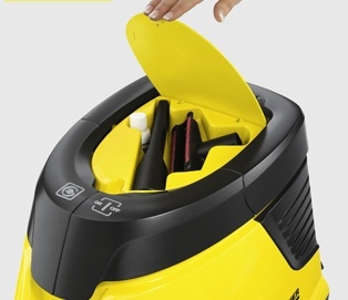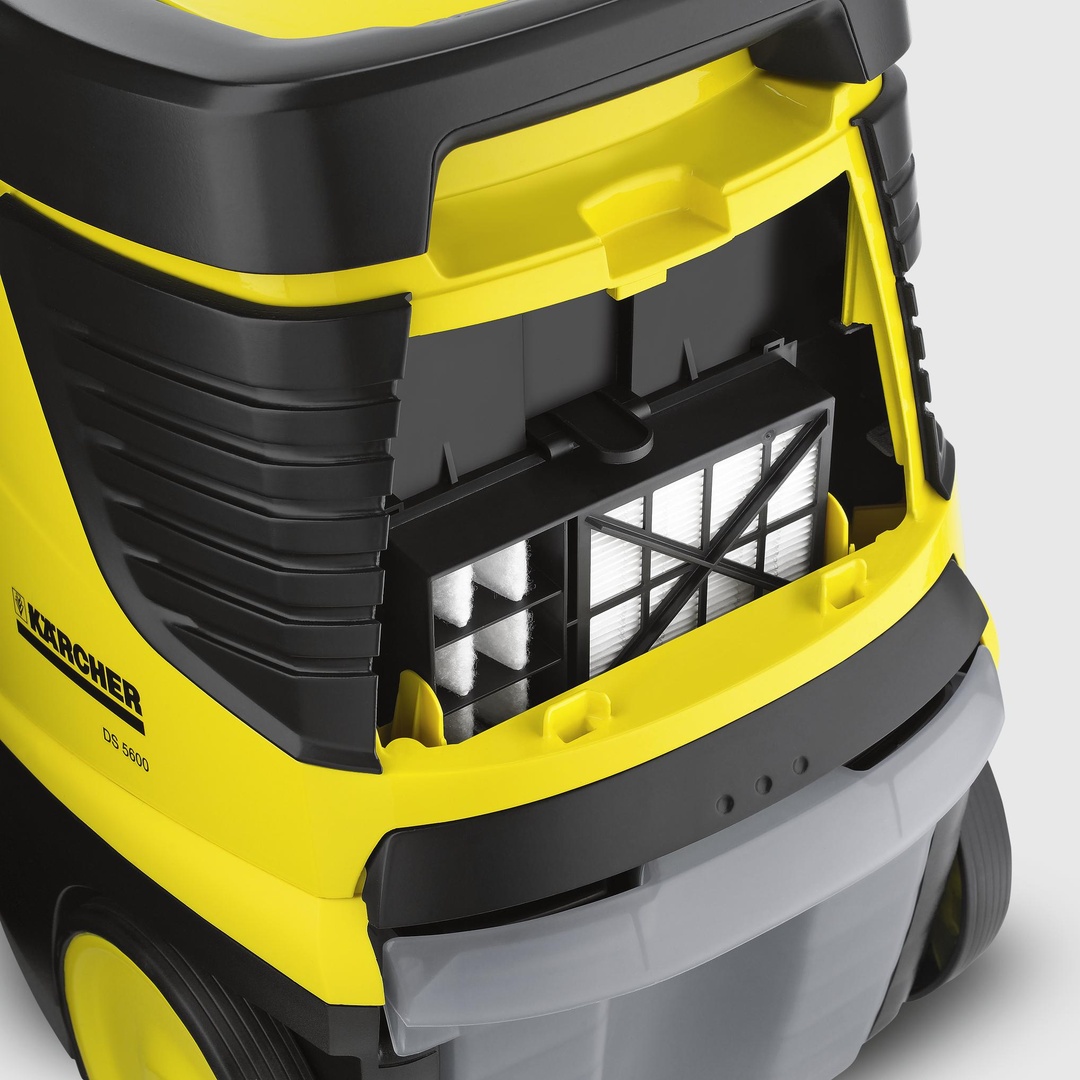 Karcher DS-5600 оборудован системой четырехкратной фильтрации без мешка для сбора пыли: пыль связывается водой и сразу же после уборки выливается в канализацию. Такая модель прекрасно подойдет людям, страдающим аллергией или семьям с маленькими детьми.