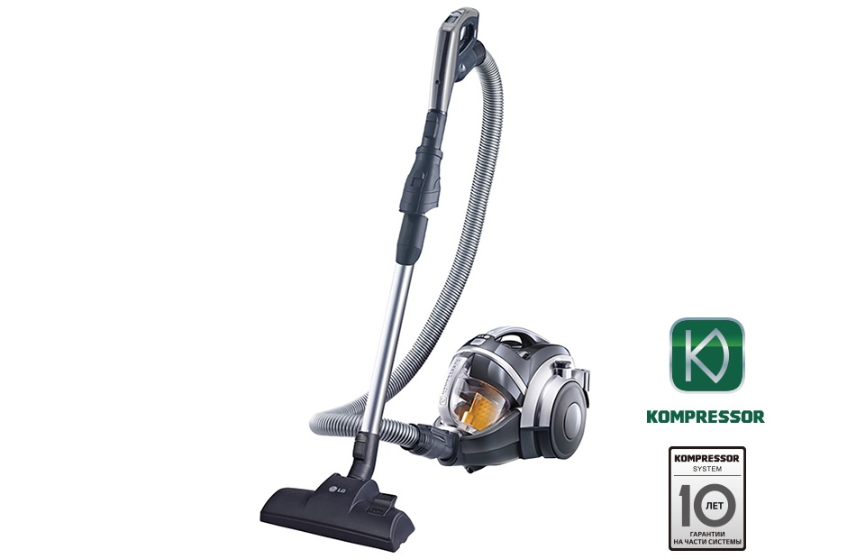 Система позволяет вместить в контейнер до 3 раз больше пыли и легко выбросить плотно спрессованные брикеты. Компания LG предоставляет 10-летнюю гарантию на систему прессования пыли Kompressor (контейнер, лопасть, механизм вращения, мотор лопасти).