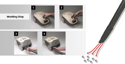 Шланг пылесоса можно закрепить в двух положениях в специальные разъемы, как во время, так и после уборки. Это позволяет легко транспортировать и удобно хранить пылесос.