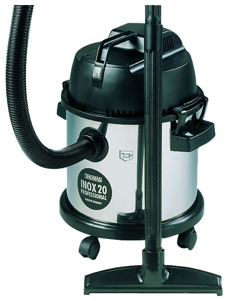 Мощный профессиональный пылесос с многочисленными насадками. Объем бака из нержавеющей стали 20 литров. Постоянный фильтр патрон позволяет использовать THOMAS INOX без мешка для сбора пыли и собирать воду с помощью вантуза.