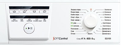 Отличается более простым управлением — достаточно выбрать программу стирки — температура стирки устанавливается автоматически.