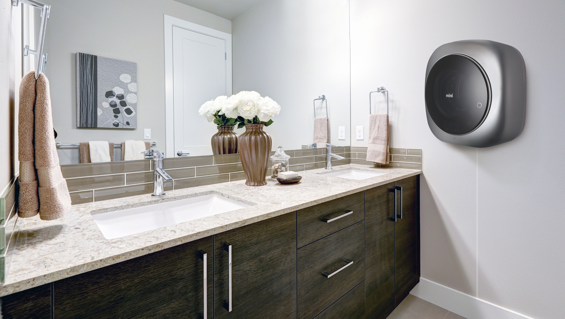 Стильный дизайн модели отлично впишется в современный интерьер. Стиральная мини-машина представлена в серебристом цвете.