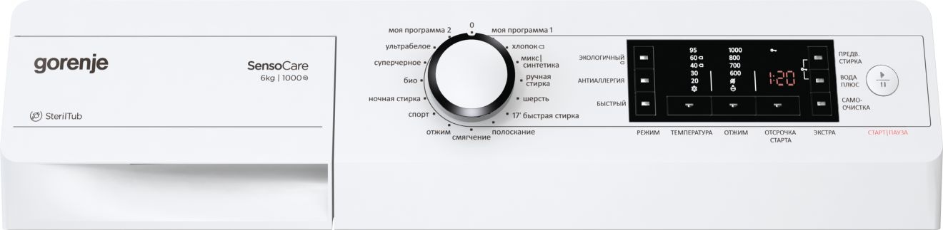 | Специальные программы | Био / Мои программы / Ночная стирка / Суперчерное / Спорт / Хлопок 30°С – 17 минут / Хлопок 20°С |