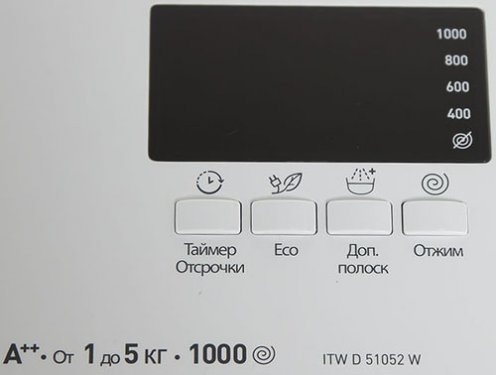 Стиральная машина INDESIT ITW D 51052 W (RF) – автоматическое устройство, рассчитанное на 5 кг белья.