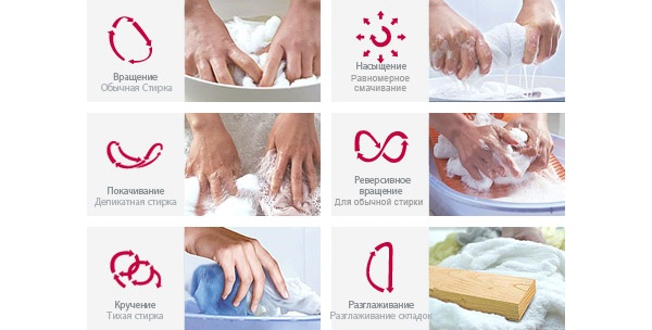 При выборе режима машинка автоматически определяет сочетание алгоритмов движения, обеспечивая по-настоящему индивидуальное отношение к вашим вещам. Алгоритм "реверсивное вращение" обеспечивает вихревое движение потока воды при заливе, что позволяет эффективно растворить моющее средство и значительно увеличить качество отстирывания.