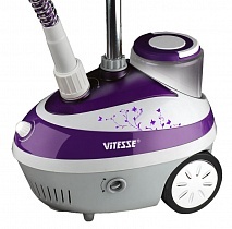 Разгладить деликатную одежду, отпарить шторы не снимая с гардины, очистить обивку мебели – во всем этом вам поможет отпариватель Vitesse VS-690. Модель оборудована подвижными колесиками, что делает его очень маневренным.