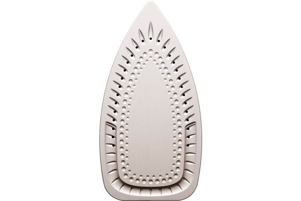Титановая изогнутая подошва с антипригарным покрытием обеспечивает идеальное скольжение по ткани вне зависимости от ее типа. Особый рельеф подошвы гарантирует равномерное распределение пара, что помогает смягчить ткань и разгладить складки любой сложности.
