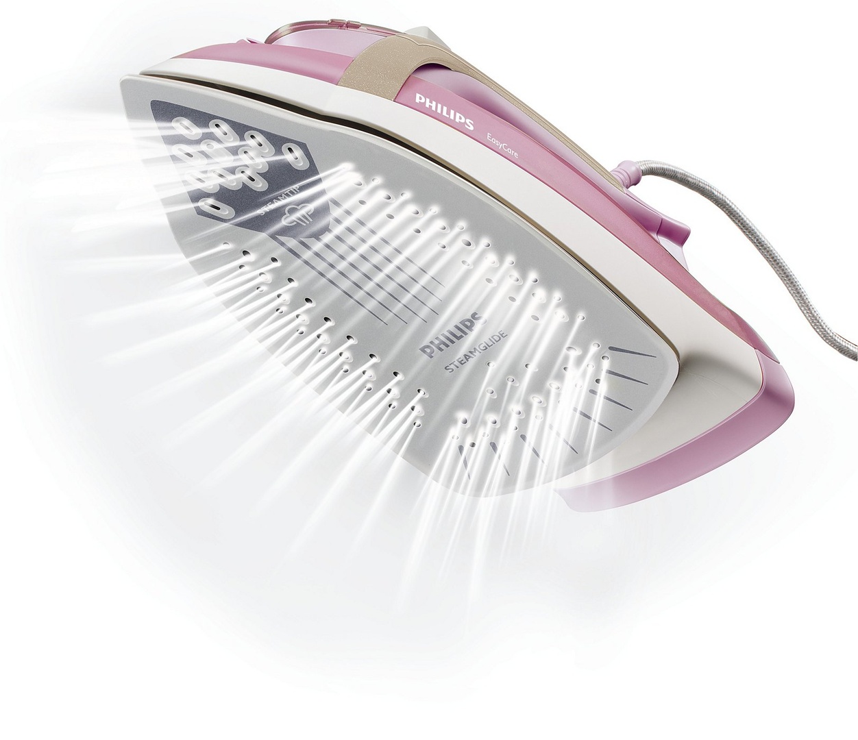 Уникальный носик подошвы утюга Philips со специальными удлиненными отверстиями позволяет пару проникать в самые труднодоступные складки и эффективно разглаживать даже мелкие элементы одежды.