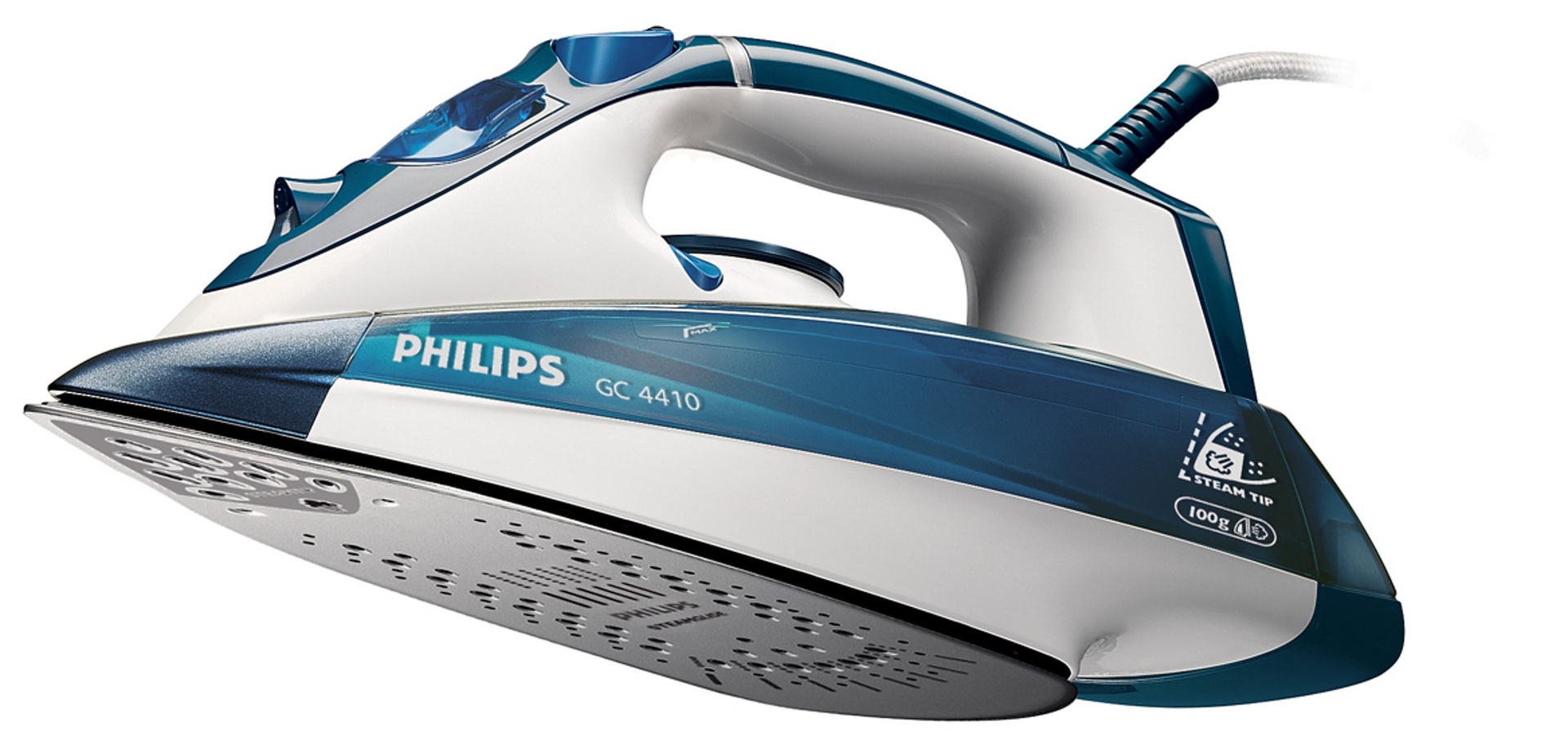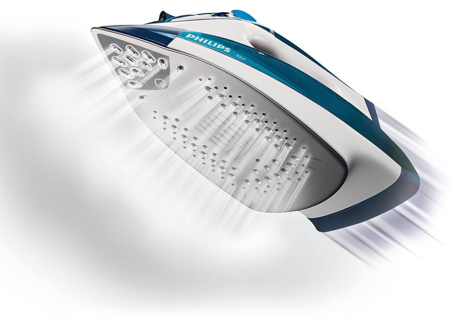 Уникальный носик подошвы утюга Philips со специальными удлиненными отверстиями позволяет пару проникать в самые труднодоступные складки и эффективно разглаживать даже мелкие элементы одежды.