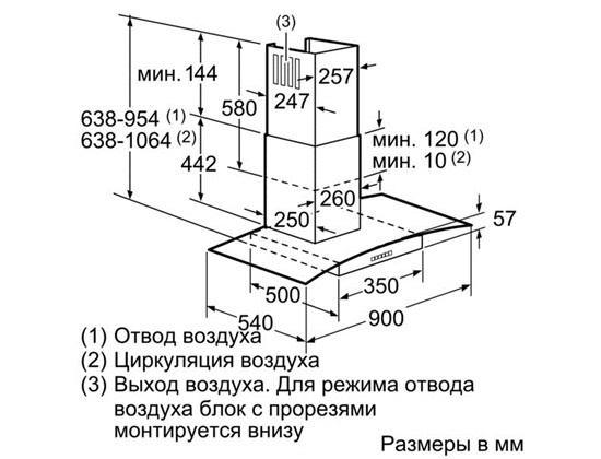 | Режимы работы | отвод / циркуляция |