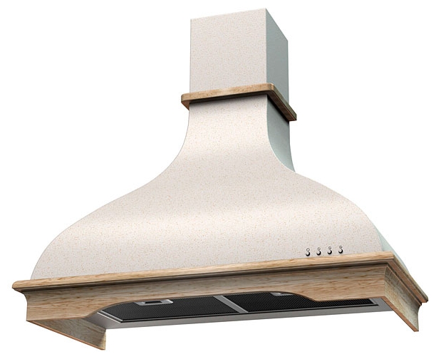 Вытяжка гармонично сочетается с деревянными кухонными гарнитурами
