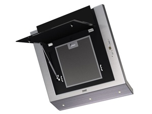 Каминная вытяжка наклонная монтируется к стене отвод /циркуляция для стандартных кухонь ширина для установки 60 см мощность 210 Вт электронное управление бесшумный.