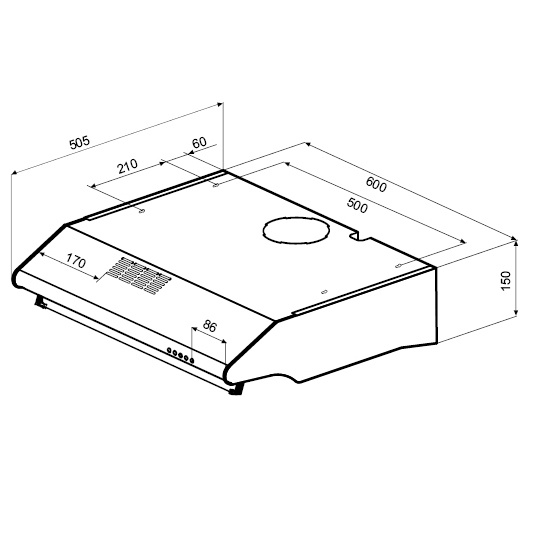 Ширина: 600 мм. Диаметр воздуховода: 120 мм. Производительность (м3/ч) max: 390 Управление: кнопочное. Количество скоростей: 3 Количество моторов: 1x110 Вт. Уровень шума, дБ.