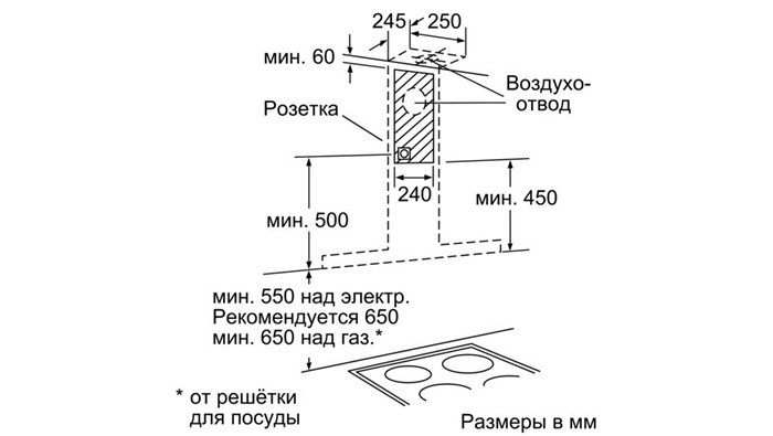 Для настенного монтажа над варочной поверхностью