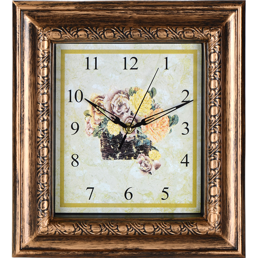 Часы настенные MAX-6143 "Блаженство"(20) 27,1х27,1х4 см, букет цветов в корзине, квадратные.