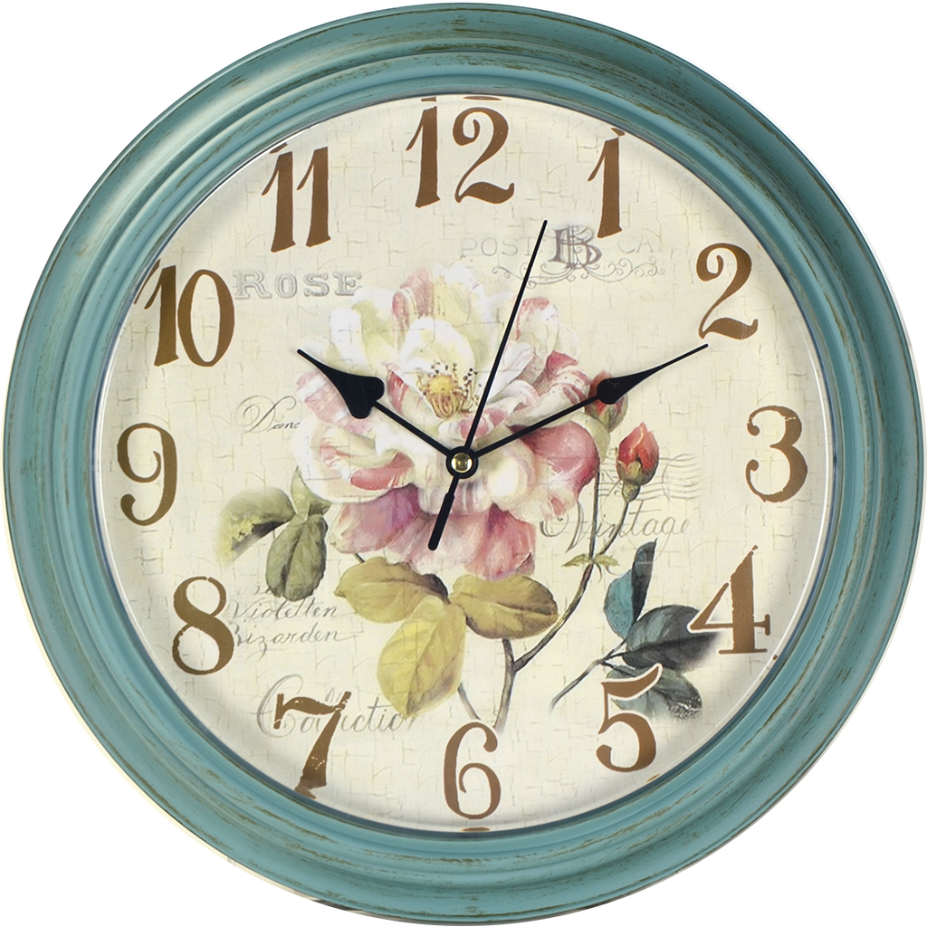 Часы настенные MAX-9510F2 "Летняя веранда"(20) 28,728,75,1см, тюльпан, бирюзовый ободок, круглые.