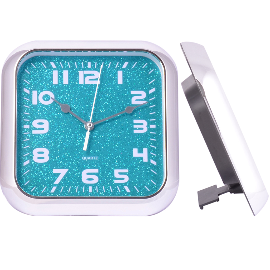 Часы настенные MAX-9618L2 "Бирюза"(40) 19х19х4,4 см, бирюзовый циферблат, серебристый ободок.