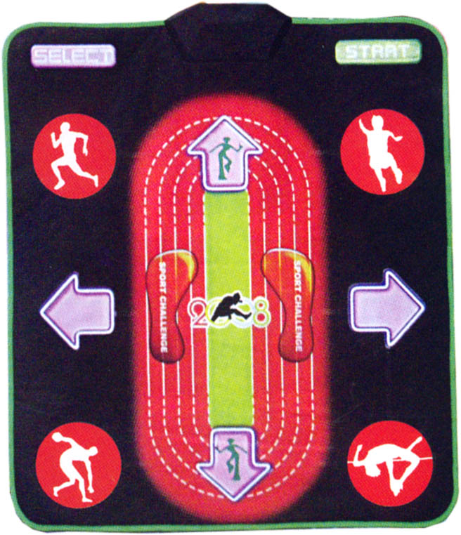 Танцевально-спортивный коврик, подключающийся к НЧ-входу любого телевизора. Позволяет весело провести время вашему ребенку (вместе с друзьями) или сбросить вес — взрослому. Пользователь наступает на 8 различных участков ковра для успешного выполнения упражнений (танца). 8 ритмичных песен и несколько спортивных соревнований (бег, метание копья, прыжки в высоту и т.д.) запрограммированы в «ковер» и воспроизводятся на ТВ. В комплекте - кабель для подключения к ТВ. Питание - адаптер 9V (250mA). Размеры: 910х770х30 мм.