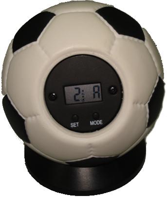 Оригинальный подарок позволит снимать стрессы по утрам. Сделанный в виде небольшого футбольного мяча, этот будильник имеет особое свойство: после того, как он зазвонит, отключить его можно либо нажав кнопку, либо бросив его об стену или пол. От удара он перестанет звонить! Есть режим установки ежечасного сигнала. Четыре режима отображения информации на ЖК-дисплее: 1) стандартное время; 2) время будильника; 3) дата; 4) отображение секунд.